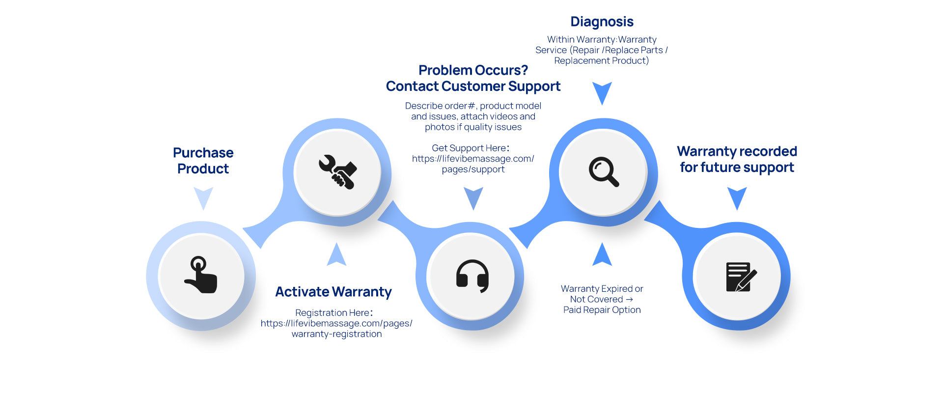 Any defect must be notified to LifeVibe within fourteen (14) days of its occurrence, supported by photographic or video evidence submitted to service@lifevibemassage.com